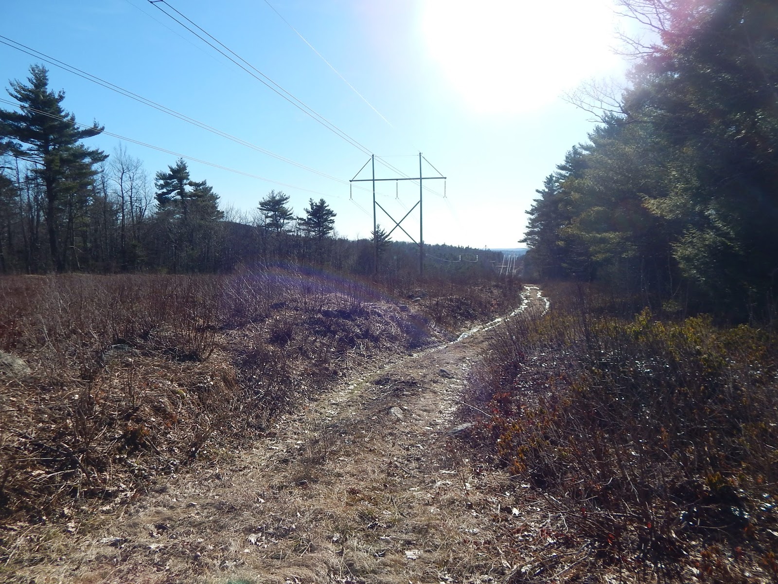 After parking on Chapman Road, we began down the Wapack Trail heading south. The left side of the trail has several "No Trespassing" signs posted on trees. The trail comes out to a line of power lines which we needed to follow for a bit after we left the Wapack Trail. It soon reentered the trees.